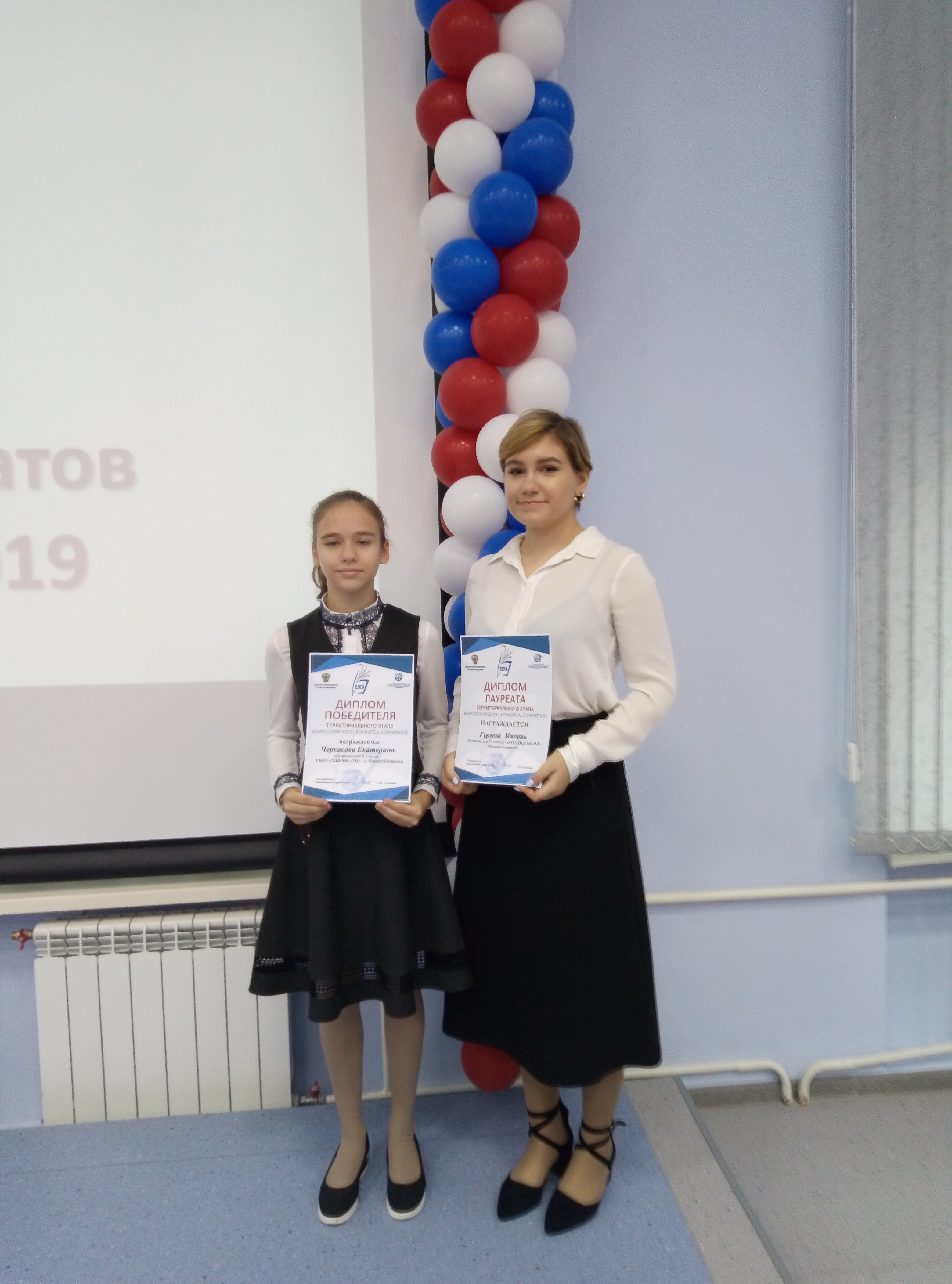На фото Черкасова Екатерина, ученица 6 "А" класса, и Гуреева Милена, ученица 10 "Г" класса . Работа Екатерины "Давай нарисуем счастье" стала лучшей в возрастной группе 5-6 классы, а работа "А мне какое дело" Гуреевой Милены стала лауреатом конкурса.